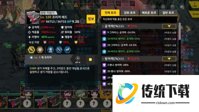 演示一下柠檬ε在物理队伍的发挥,二技能配合被动的减少防御,两回合减112%,再高的防御都会变成负数。