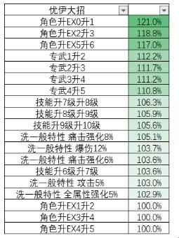 在EX0+1专的基础上,抽3角色提升43.7%,抽3武器提升39.5%,角色突破收益比武器高。EX3 80%几率爆橘对游戏体验影响极大。一但没爆橘,伤害就砍半。非EX6的优伊,在高强度副本中太凹几率,导致使用体验极差。