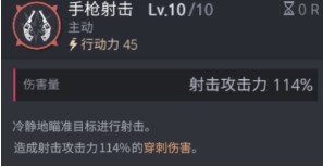 红米、黑米同款的平A单体伤害,由于双枪武器特性,加了射程,但行动力消耗变多。