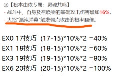 五维技巧数值,超过15点的部分,每点提供10%概率爆橘。EX专武专属效果,使爆橘概率翻倍。