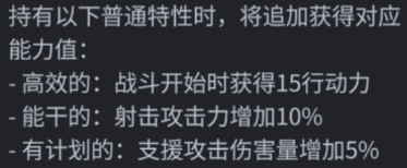 战斗开始行动力10 行动恢复力-3%(能干的)