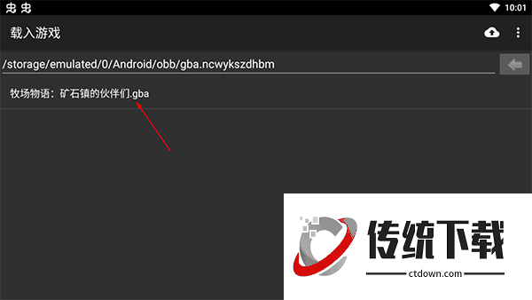 1、首先打开牧场物语矿石镇的伙伴们最新版,点击如图的gba游戏文件;