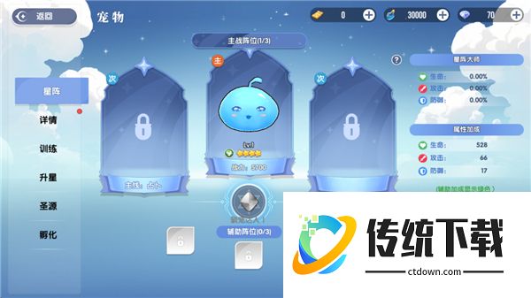 宠物也是不可忽视的一方面,通关星空之镜对应关卡后,最多能够选择3名宠物进入主战行列,还能选择6名宠物进入辅助行列。最重要的就是三名主战宠物,一定要选择SSR/UR以上宠物,不仅技能效果好属性也很强力。在选择好宠物后还能进行等级提升,以及资质训练和升星强化。训练时只要当一条资质达到满级就能进行突破,只有不断的突破和升星,才能最终形成强悍的战斗帮手。