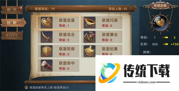 升级联盟技能,可以获得高额属性加成,但是需要消耗一定的联盟贡献。所以,尽可能多的去获取联盟贡献,可以更快的升级联盟技能