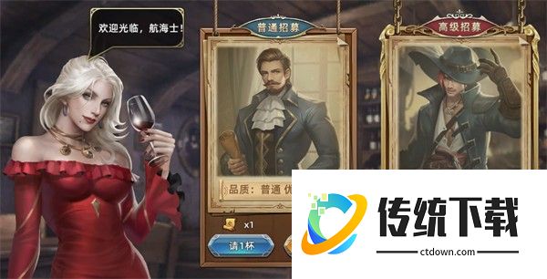 酒票:在酒馆中使用普通、高级酒票可代替其他货币,免费招募船员。