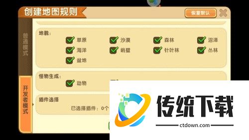 1、点击创造新世界,选择【开发者模式】。
