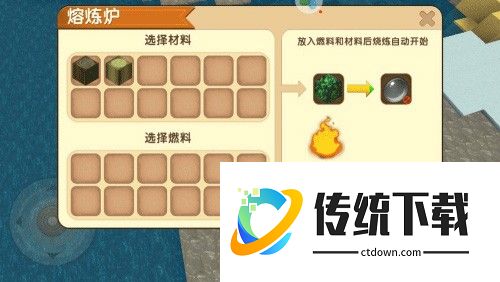 5、进入世界后,背包里面什么都有,先把大煤块、孔雀石块、熔炉放到背包快捷栏。