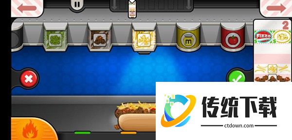 1、趣味纷呈的热狗制作模拟游戏,亲自的将每一个不同的食材进行处理以及加工。