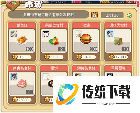 3、菜品市场 蒸羊羔蒸熊掌蒸鹿尾珍馐百味虽说做好的料理放个十天八天也不会坏掉,可总在那儿占着地方也不是事,鸡肋尚且弃之可惜,何况辛辛苦苦做好的料理,这种时候放到市场上去卖就是个绝好的选择,而自己需要的料理或食材也可以从其他玩家手里轻松买到,省去了很多麻烦。即使市价有波动,官方店依然会扛起调控市场的大旗,坚守原价料理食材的底线,不想多花钱的,在萌娘一号店门口蹲点也勉强行的通啦。