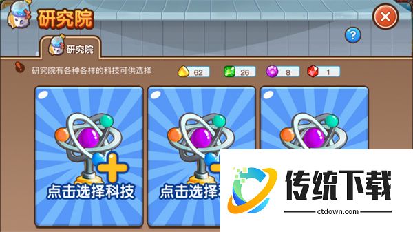 研究院可以用宝石开启多种科技(目前有5种科技可供选择),科技用一句话来概括就是为期2天的各种增益buff。可以看到,能够同时开启的科技最多3个,并且每种科技的增益时间都是48小时。下面我们来看看各种科技的妙用吧: