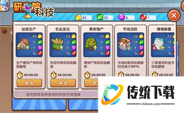 这个科技巨昂贵,如果镇长大人没有两天内订单发货5次免费+购买发货次数25次,那这个科技也慎点哦,但是如果镇长大人打算在48小时内把订单次数用完,开启这个科技将让你的订单金币经验翻倍哦!(可惜获得宝石数量不是翻倍呢)