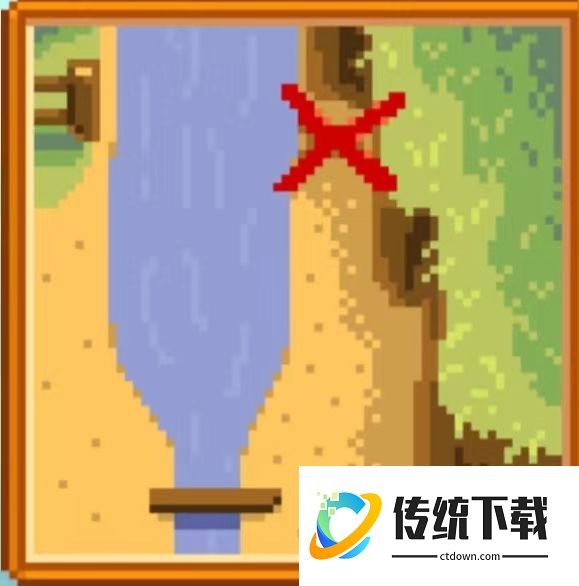 5、从自家农场出发往南走(下面的一条路),然后往右一点点有两座小木桥,走过去。