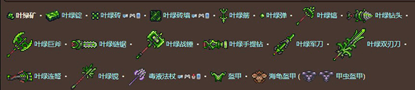 下面是叶绿矿可以制作的物品。