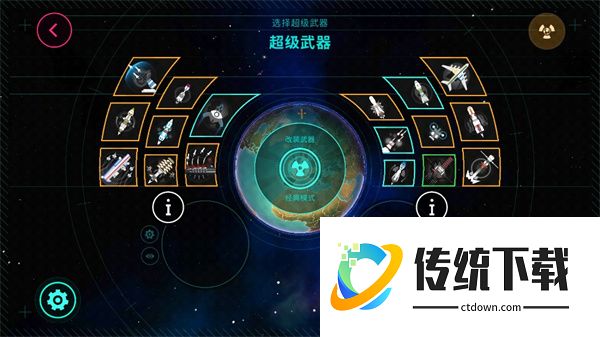 2、首先我们来选择国家,左右两侧有详细的国家介绍和武器介绍;确定好国家后,选择超级武器进入经典模式;