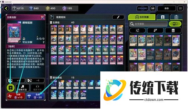 收藏分解合成按钮,手机端要单独点击卡片才能看见这几个按钮,拆解按钮,每次禁限表适用按钮不会有变化,但是拆解还是会返还的,所以不要问为什么拆解不多返还