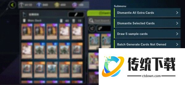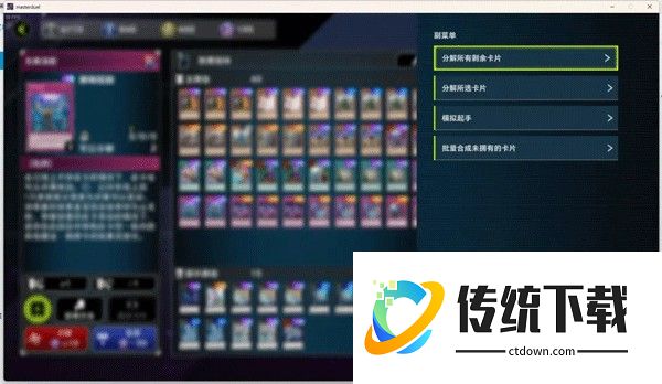 第一个是将所有超过3张的卡分解到三张为止,第二个是批量分解,第三个模拟起手,第四个是批量合成。