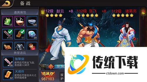 挑选三名得力的武将上阵十分关键,小编主推“赵云、张飞、诸葛亮”组合。