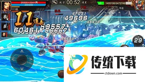 连招技巧:赵云、张飞不必多言,连招流畅,轻易不会掉招。诸葛亮连招时需要一定技巧,小编建议使用诸葛亮时,起手雷霆万钧最佳,不等BOSS落下接万箭穿心,再接霹雳火,稍有不慎就会断招。不过掉招也不是没有补救,如果有能量豆,直接呼风唤雨再把BOSS打起来,切赵云又是一阵猛打。