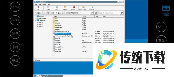 1、进入模拟器后找到C盘-game-game-Program Files (x86)-pvz-Weihua,找到PlantsVsZombies.exe启动游戏