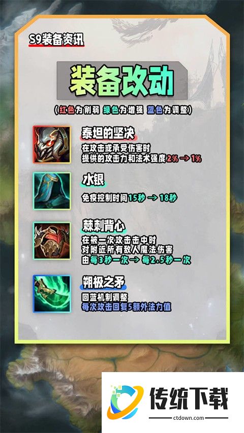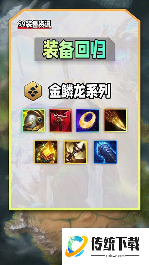 云顶之弈s9赛季符文大陆即将全新上线,此次新赛季除了新增了传说之地和城邦玩法两大机制外,还有全新的装备改动,既有此前赛季装备的回归,也有新装备的加入,许多玩家都想了解新赛季的装备情况,本期内容就为大家带来云顶之弈s9装备介绍详细表以及新增装备介绍。