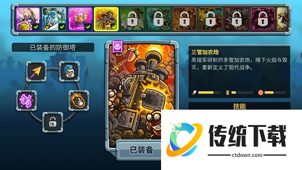 2、游戏中最主要的就是防御塔了,每种防御塔都有独特的攻击方式,玩家可以自由搭配上阵。