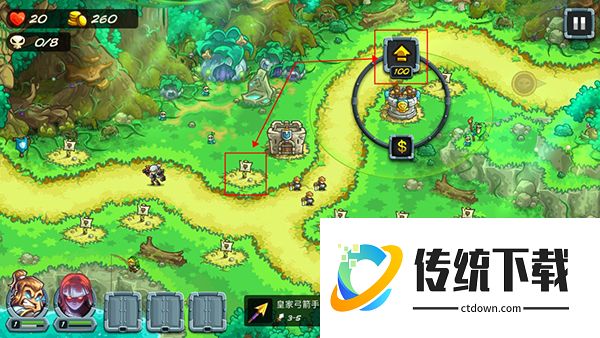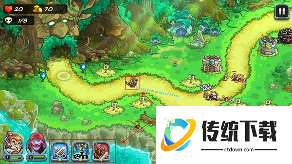 多样化的兵种与塔楼:延续系列传统,玩家可以招募包括圣骑士、弓箭手、法师、死灵法师在内的多种经典防御单位,并有可能解锁更多隐藏角色和特殊兵种。