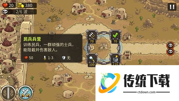 训练民兵,一群顽强的士兵能阻截并伤害敌人。