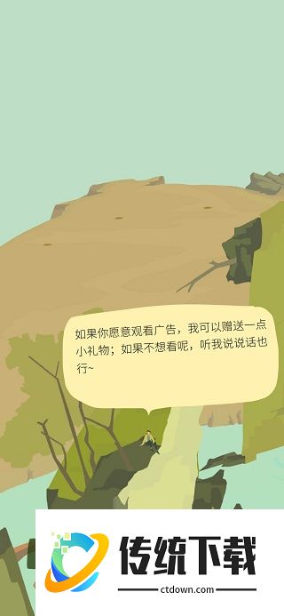 点亭子旁边那个小人儿,他叫慕容富,底下出来3个选项,选择看广告会得到种子或者阳光,阳光可以延续树的存活时间;