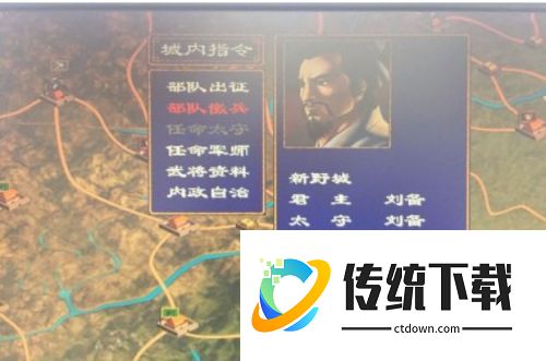 每年进入一月时就会进入内政经营模式,此时,玩家所占领的城市都会有税收进帐。人口数的提高将使此城能有更多的税收并提高预备兵上限。