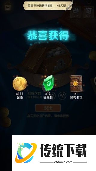 竞技场的门票可不便宜,1000大洋的门票让很多苦攒金币准备换卡包的玩家望而却步。其实竞技场才是快速获得卡包的最快方式。只要胜利两局,我们不但可以轻松入手一个经典卡包,而且还可以获得卡牌合成道具碎晶石以及金币奖励。