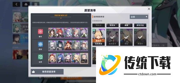 2、初期保持一个专武即可,重点抽取池中主队角色,逐步完善心愿清单。