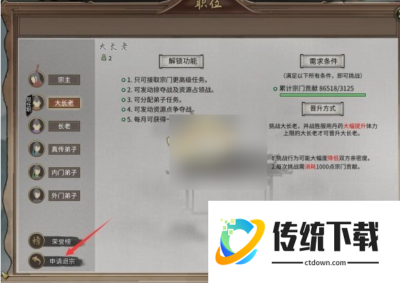 宗门-职位晋升-申请退宗