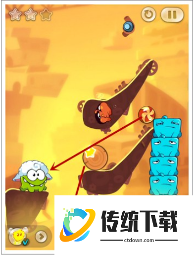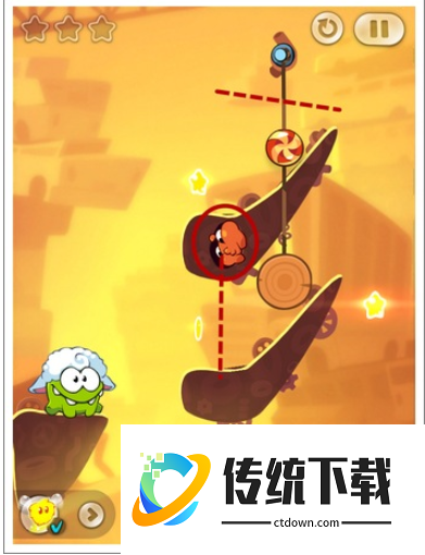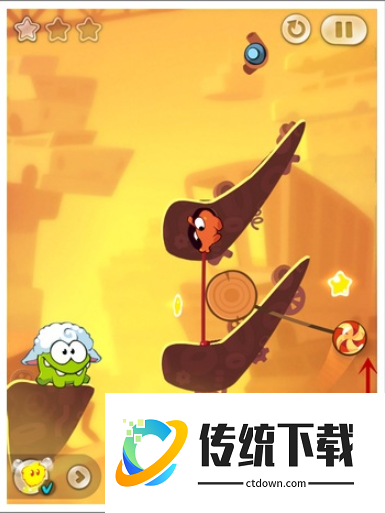 额外任务:收集三颗星星,只能切割绳子一次。