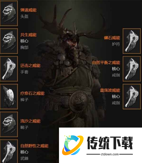 核心思路:3召唤+1范围AOE,最大化召唤物输出。 特色:主手提供攻速/移速加成,弥补近战贴脸需求,输出稳定但需贴身战斗。 对比:不同于死灵法师的远程召唤,德鲁伊需主动靠近敌人触发AOE。 适用场景:持久战或需要持续压制的副本。