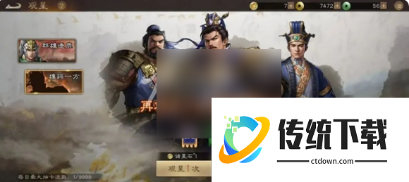 1、幸运观星:可以指定额外获取的稀有武将,每250次观星为一轮,每一轮完成,可以获取大量的观星石和金珠和其他奖励。