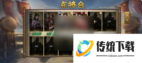 3、点将台:可以指定武将,每天获取一位,先指定对应阵营的武将和本体。