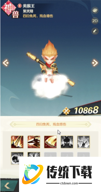 在这个阵容当中,美猴王主要负责输出以及防御,锦鲤则负责增强团队的续航能力,夜巡可以增加团队的移动速度,保证每个回合美猴王都会处于先手状态,天犬属于单体输出角色,可以帮助美猴王补充伤害,保证最后一击能够击杀敌人,这一个阵容的收集难度比较大,对于前期和中期的玩家而言,想要达成这个阵容比较困难。