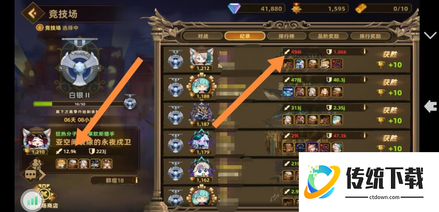 4、竞技场商店只买【英雄随机召唤卷】,200积分5张,运气好出五个传说英雄,一般是三金二紫,50积分1张