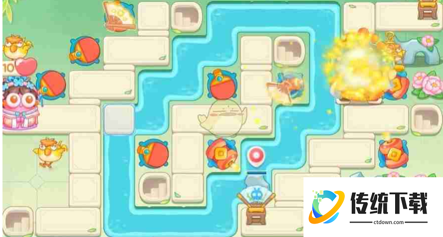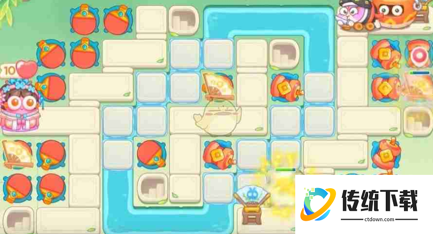 《保卫萝卜4》梁波波与祝秋秋第90关高分速通攻略!本关地图中央水域面积较大,挑战性十足。以下步骤将助您轻松通关: