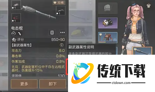 副武器目前只能装配冷兵器,例如电棒、长刀、电锯等。