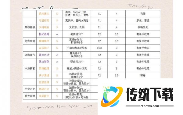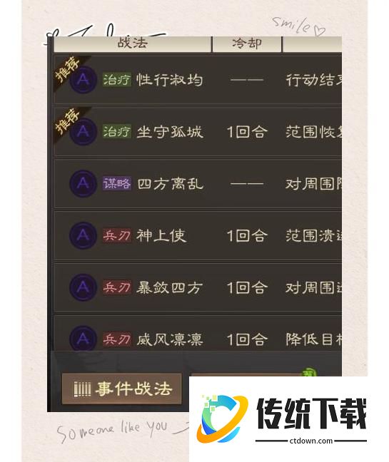 提前了解事件战法的各项要求,可以有效预防由于误操作而导致的武将资源浪费。以下,我整理了一份事件战法的详细清单供各位玩家参考。