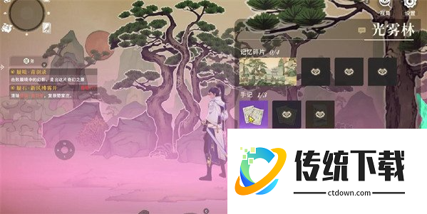 玩家来到光雾林中,先跟着发光的记忆碎片直接往前面走,这时候就会碰到岔路口,玩家需要合理的选择.毕竟玩家选择错误之后将会影响到最终的结果,其实玩家在探索光雾林的时候也需要了解光雾林的机制,并且要结合系统,因为在选择时玩家要是发现系统突然弹出金色的箭头,这个其实就是告诉玩家直接按照金色的箭头方向往前面走,此时会涉及到解谜的相关内容。