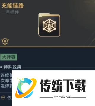 1、主武器一号位选择充能链路,连续射击40次后,如果你的主动技能充能超过一半,那么每次命中则消耗1%的技能充能,为主武器的主弹夹添加一发子弹;
