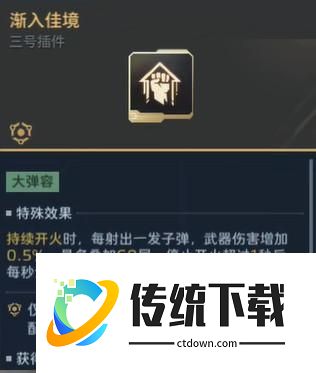 3、三号插件带【渐入佳境】渐入佳境,连续射击总共的增加30%的增伤;