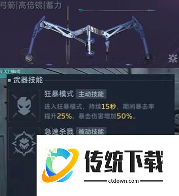 5、副武器选择震弦副武器,二号插件选择随时待命,震弦主动技能狂暴模式可以在15秒内暴击率提升25%、暴击伤害提升50%,可以说是和我们暴击流的死神猎手珠联璧合;