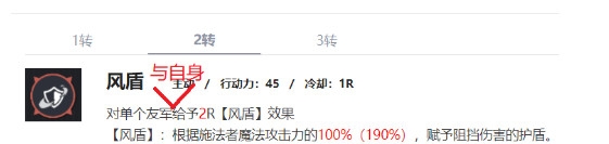 风盾6级倍率150%,魔法攻击力可以到500+。一口风盾500*150%=750血护盾。并且给目标套个750血护盾的同时,自身也套个750血的盾。