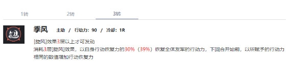 瞬间回58行动力+下回合回58。下回合开局又能开大,那么合计平均下来,每回合给全队116点行动力。