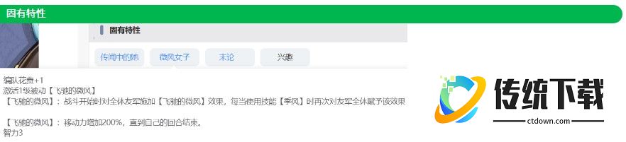 因为被动的移速存在感低,开局难以叠满,所以在特性上进行改善。 战斗开始时,每个角色第一次行动时,+200%就是3倍移速。开大后又能使用一次。完美解决了近战职业开局移动消耗大量行动力的问题。效果非常显著。