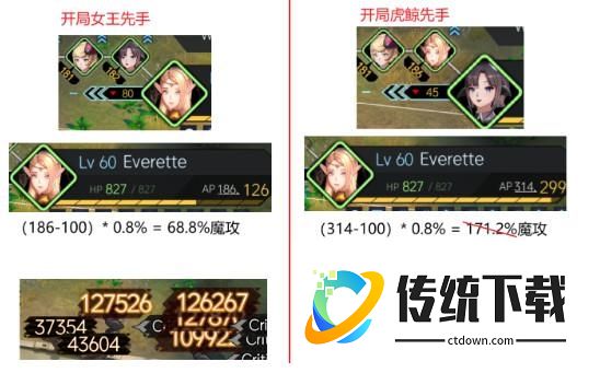 加魔攻加成多少依据女王第一次行动时的AP,并非女王开大时AP多少。因此一但女王最先行动,且AP不足300,就会导致伤害锐减。(即使女王待机到虎鲸之后也没用,第一次行动时女王AP已经定了,专武的魔攻加成不再改变了)