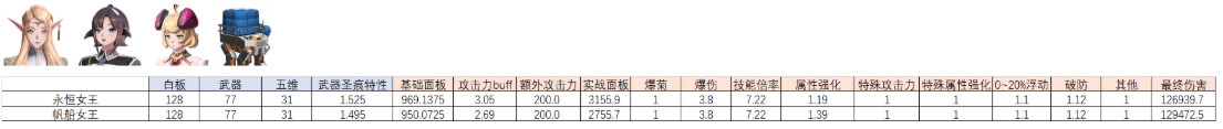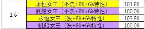 极限满配置队伍情况下,帆船女王比永恒女王伤害高2%。帆船女王核爆12.9w,永恒女王核爆12.7w